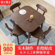 御木霖丰 餐桌 实木折叠餐桌椅组合伸缩北欧家用方形小户型饭桌子歺桌餐厅家具 0.9-1.2伸缩桌(送货到家)