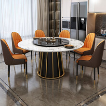 牧雀 餐桌轻奢大理石餐桌椅组合圆桌后现代简约餐桌6-8人饭桌餐厅家具 B款 (颜色备注) 1.2米餐桌配转盘