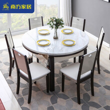 南方家居 餐桌 现代简约大理石餐桌可伸缩折叠圆形实木饭桌北欧家用桌椅餐厅家具 一桌六椅【石材台面】