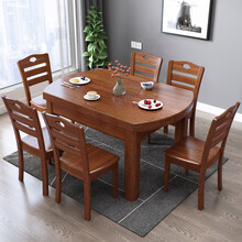 南宜(nanyi)餐桌实木餐桌可伸缩折叠现代中式六椅餐椅套装圆形饭桌子餐桌椅组合 1.2m一桌6椅 胡桃色