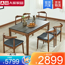 A家 餐桌 火烧石实木餐桌椅北欧现代简约大小户型饭桌子组合 DC2207 餐椅橡木实木款 一桌六椅