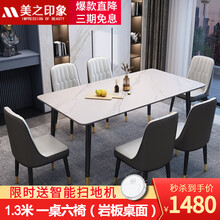 美之印象 餐桌 岩板餐桌椅组合 意式轻奢现代简约家用饭桌子灰色皮椅长餐桌餐厅家具 雪花白 1.3米【一桌六椅】