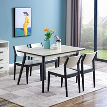 (门店同款)全友家居餐桌椅组合意式极简饭桌石纹钢化玻璃台面轻奢餐厅桌子ZX00191 餐桌+餐椅*6