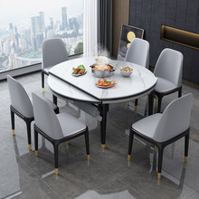 玉杰居 岩板餐桌椅组合带电磁炉餐桌现代轻奢简约实木家用小户型折叠伸缩北欧饭桌 雪山石岩板[带电磁炉] 1.35米餐桌+6椅