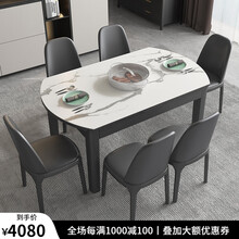 叶芝 岩板餐桌椅组合现代简约实木伸缩圆餐桌电磁炉家用饭桌 1.35米岩板餐桌+6椅(带电磁炉)