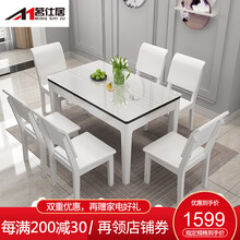 茗仕居 餐桌 实木餐桌椅组合长方形钢化玻璃可选带电磁炉款西餐桌现代简约小户型吃饭桌子客餐厅套装 1.2米配4椅