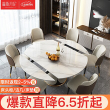 温斯丹尼 餐桌 意式极简岩板餐桌椅组合轻奢家用岩板可伸缩折叠圆餐桌北欧现代简约大小户型吃饭桌1259 【直径】1.3米 一桌六椅【旋转升降】
