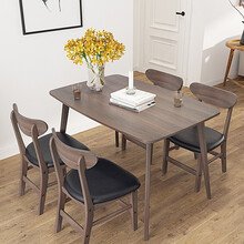 实木腿餐桌椅组合小户型家用桌子现代简约北欧简易1.2米1.38米网红长方形饭桌 1.38米深胡桃色餐桌+4张黑色皮面椅子
