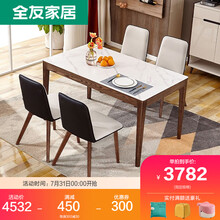 全友家居岩板餐桌椅组合现代北欧水曲柳实木吃饭长方形桌子餐厅皮艺软包餐椅670125 岩板餐桌+餐椅*4