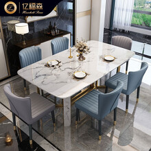 亿福森 轻奢大理石餐桌椅组合现代简约小户型家用客厅吃饭桌子长方形饭桌大理石餐桌餐厅家具 大理石餐桌 1.4米 定金
