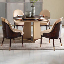 诗帝轩 意式轻奢大圆形餐桌大户型别墅客厅实木后现代家具转盘餐桌椅组合精品家具 1.35米餐桌+6椅