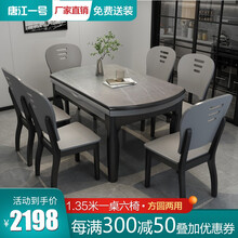 唐江一号餐桌椅组合可变圆桌轻奢岩板餐桌方圆两用现代简约实木餐桌家用小户型吃饭桌子 1.35米单桌+6椅【黑灰加灰色岩板】