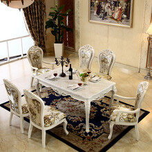 欧式大理石餐桌法式田园餐桌椅组合6人长方形饭桌成套高档家具 图片色 单桌
