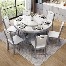 风之意 餐桌 现代简约大理石实木圆桌带转盘家用饭桌餐桌椅组合餐厅家具FR-106 高级灰(配转盘) 一桌6椅 (1.3米)