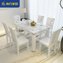 南方家居 现代简约时尚餐桌椅组合小户型烤漆实木大理石餐桌 餐桌+餐椅*4(一桌四椅组合) 1.3米餐桌