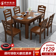 紫桐 餐桌实木餐桌椅组合现代简约中小户型可折叠餐桌方圆两用新中式圆餐桌长方形禅意6人多功能餐厅家具 【店长推荐】1.38米一桌六椅