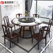 本分 实木餐桌 新中式岩板餐椅椅组合现代简约家用吃饭桌子轻奢大圆桌带转盘餐厅家具 1.3米 单餐桌【岩板款带转盘】
