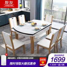 靓友 餐桌意式极简岩板大理石可伸缩折叠餐桌椅组合轻奢简约小户型方圆两用实木转盘桌带电磁炉餐厅家具套装 榉木色 1.35米一桌六椅+茶几电视柜+沙发双单贵