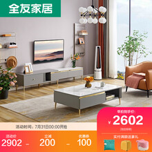 全友家居茶几电视柜组合现代轻奢高端家用小户型客厅仿岩板钢化玻璃可伸缩电视机柜126905 茶几+伸缩电视柜