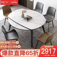 温斯丹尼 餐桌 岩板餐桌椅组合可伸缩折叠实木餐桌北欧饭桌子家用现代简约小户型岩板圆形餐桌 1257 1.3米【带镀金黄铜脚套】【白腊木】【可伸缩】...