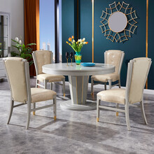 光明家具 实木圆餐桌餐厅家具 轻奢旋转餐桌组合岩板餐桌 41659 一桌四椅