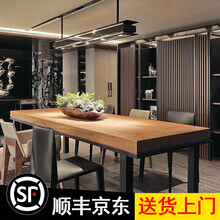 御颜实木餐桌椅组合简约饭桌家用吃饭桌子北欧复古咖啡餐厅长条桌多功能原木办公会议工作台桌子 单桌:120*60*高75*厚5cm