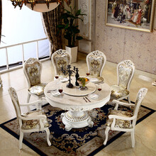 欧式餐桌椅组合圆形大理石吃饭桌子6人实木法式饭桌家用成套家具简欧法式 图片色 单桌【不带转盘】