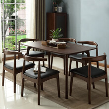 锦巢 餐桌实木餐桌椅组合现代简约长方形饭桌北欧小户型餐厅家具橡胶木桌子MZDR-2315 胡桃色(牛角椅) 单 桌 (1.5米)