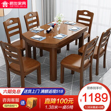 爵友 餐桌实木餐桌椅组合现代简约中小户型可折叠餐桌方圆两用新中式圆餐桌长方形禅意6人多功能餐厅家具 胡桃色 一桌六椅(1.38米)
