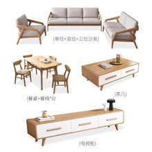 客餐厅全屋套装组合 原木色客餐厅12件套(沙发茶几电视柜餐桌餐椅) 【进口白蜡木+科技布座包】