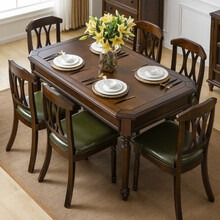 艾瑟儿摩登美式餐桌实木长方形餐桌椅组合6人复古小户型餐厅吃饭桌子 1.35米餐桌+4皮椅深胡桃色