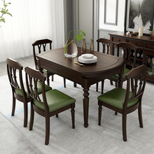 艾瑟儿摩登美式实木餐桌椅组合可伸缩折叠家用小户型方圆两用餐厅桌子4人6人 1.2米餐桌深胡桃色(不含餐椅)