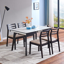 (门店同款)全友家居餐桌椅组合现代简约实木框架餐厅桌子钢化玻璃台面吃饭桌子皮质软包餐椅ZX00190 餐桌+餐椅*4
