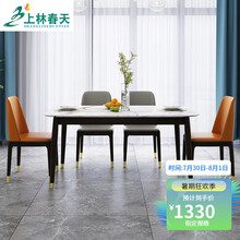 上林春天 餐桌 实木餐桌椅组合现代简约轻奢 长方形大理石餐桌饭桌餐厅家具 1.3米一桌六椅(椅子发八角椅橘色*2+灰色*4)