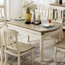老酋长美式纯实木餐桌椅组合伸缩折叠圆桌椭圆形跳台饭桌地中海成套家具 伸缩餐桌
