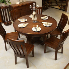 爱绿居 现代中式胡桃木实木餐桌椅成套家具 简约欧式圆餐桌带椅子 1.3米餐桌 一桌六椅