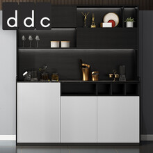 DDC意式极简轻奢岩板酒柜客餐厅成套配套双开门玻璃酒柜大小户型家用客厅储物家具 劳伦黑金-1.6米高边柜