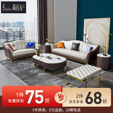 尚百万 美式轻奢真皮双人皮沙发小户型北欧现代简约家具客厅沙发组合套装 设计师客厅餐厅成套家具 组合