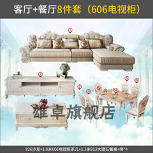 雄卓 欧式家具 全屋套餐欧式家具全屋组合主卧床衣柜组合套装小户型现代简约客厅成套家具 客厅+餐厅8件套(606电视柜) 1500mm*2000mm 组装式架子床