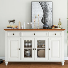 柏曼雅美式餐边柜美式小实木橱1.4餐柜茶水柜餐厅双门玻璃柜储物柜田园餐厅柜别墅成套家具 1.4米餐边柜