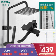 贝尔希(BESy)卫浴淋浴花洒套装增压喷头淋雨洗澡莲蓬头精铜龙头全铜主体淋浴器创新SPA背喷功能黑色 四档方体升级款-不锈钢方顶喷+全铜二合一手...