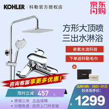 科勒(KOHLER)淋浴花洒套装 手持花洒喷头莲蓬头淋浴柱升降可调恒温花洒 亲氧三出水77365、方形顶喷 空气SPA享受 【免费安装】