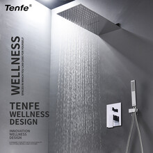鼎菲(Tenfe) 创新溥款暗装瀑布淋浴花洒 入墙式淋浴瀑布简约套装 三功能阀体配飞雨瀑布花洒带手持