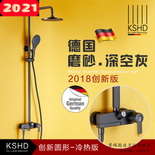 旗舰枪灰色恒温花洒套装全铜黑色淋浴器龙头增压喷头 2019创新圆形(冷热版) 深空灰