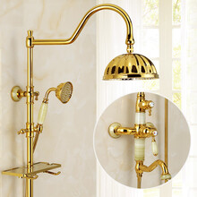 全铜欧式花洒套装家用浴室沐浴恒温淋浴器卫生间淋雨金色增压喷头 豪华青玉款