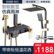 毕柯舒BKS黑金色花洒数显恒温淋浴花洒套装增压喷淋莲蓬头淋雨器套装手持花晒浴室花洒 黑金数显双排按键四档(恒温款)