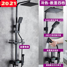 黑色恒温智能数显花洒套装按键家用浴室淋浴器增压喷头全铜混水阀 (数显四挡)Y6811(黑色方杆)