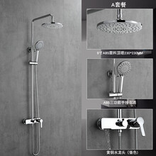 2021新款skao简易全铜挂墙式淋浴花洒套装枪灰色明装冷热龙头家用黑色金色 铬色A套餐