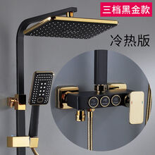 悉薇 黑色恒温淋浴花洒套装全铜家用增压淋雨喷头卫生间升降花洒 黑金按键三档