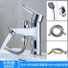 牧滨 全铜面盆冷热水龙头带洗澡花洒淋浴喷头 卫生间浴室洗脸盆台盆单孔混水阀 双用面盆龙头+80进水管2根+新五档花洒套装